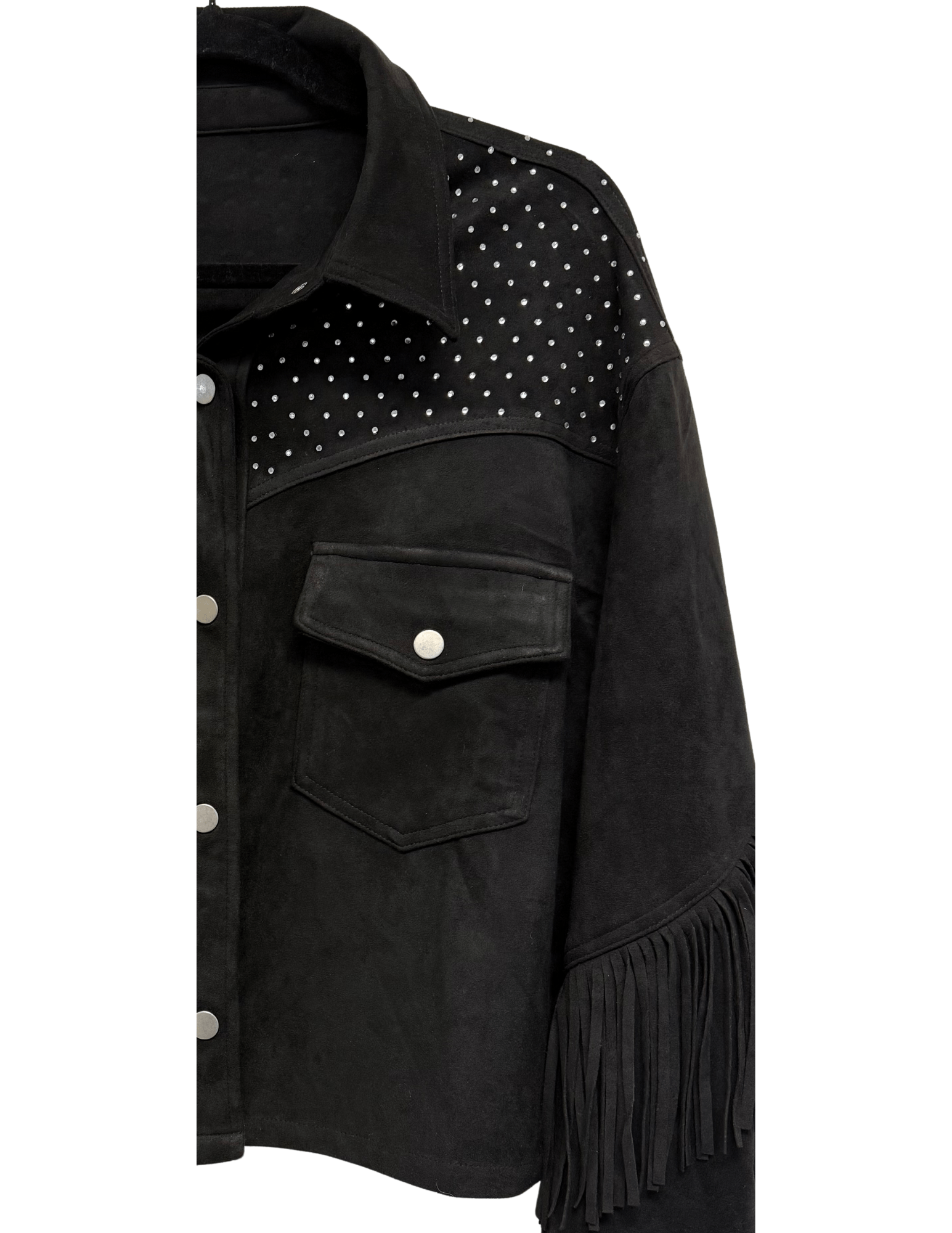 Jacket, Suede Fringe Black, Crystal Waterfall