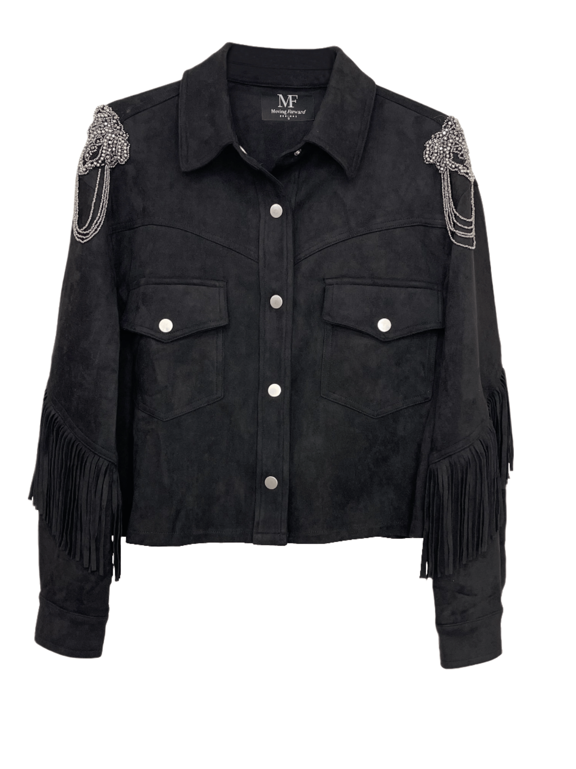 Jacket, Suede Fringe Black, Shoulder Medallions