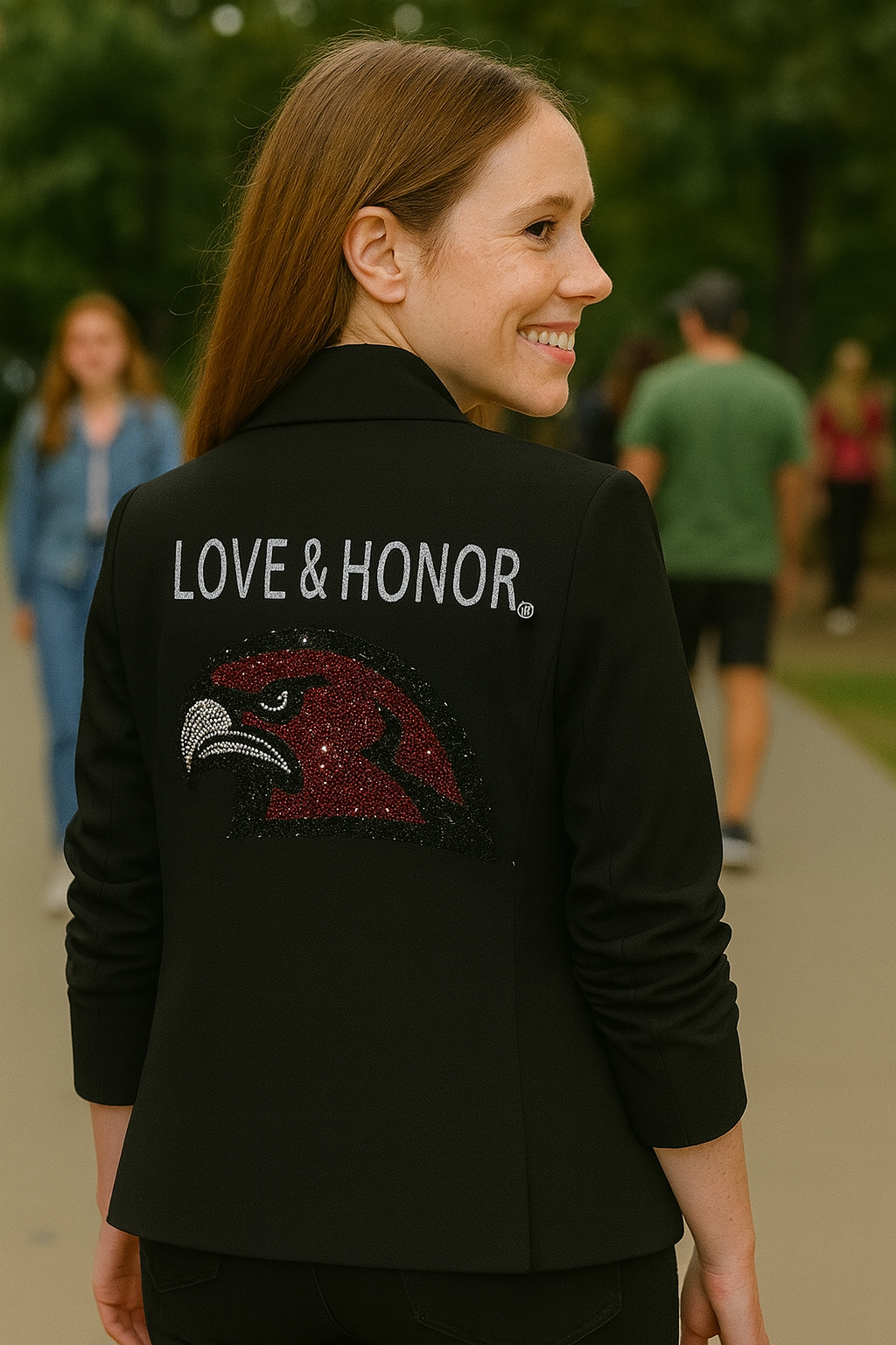 Game Day Blazer, Black Ruched, Miami of Ohio Redhawk Love & Honor