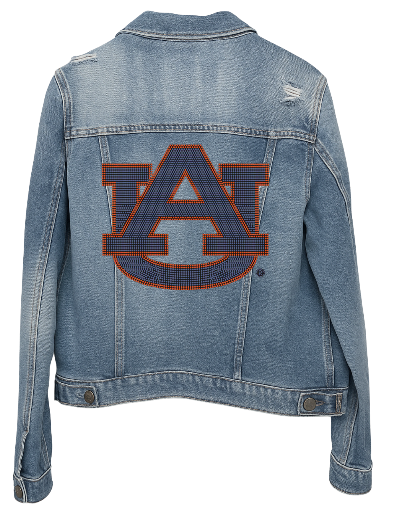 Celebrate your team spirit with the Game Day Jacket in blue denim, featuring a sleek rhinestone Auburn University logo. This jacket combines durable denim with eye-catching sparkle, making it perfect for game day or casual wear. Established in 1841, the design proudly showcases your War Eagle pride, while the rhinestone logo adds a refined touch of style and sophistication. Ideal for fans who want to stay comfortable and stylish while supporting their team.