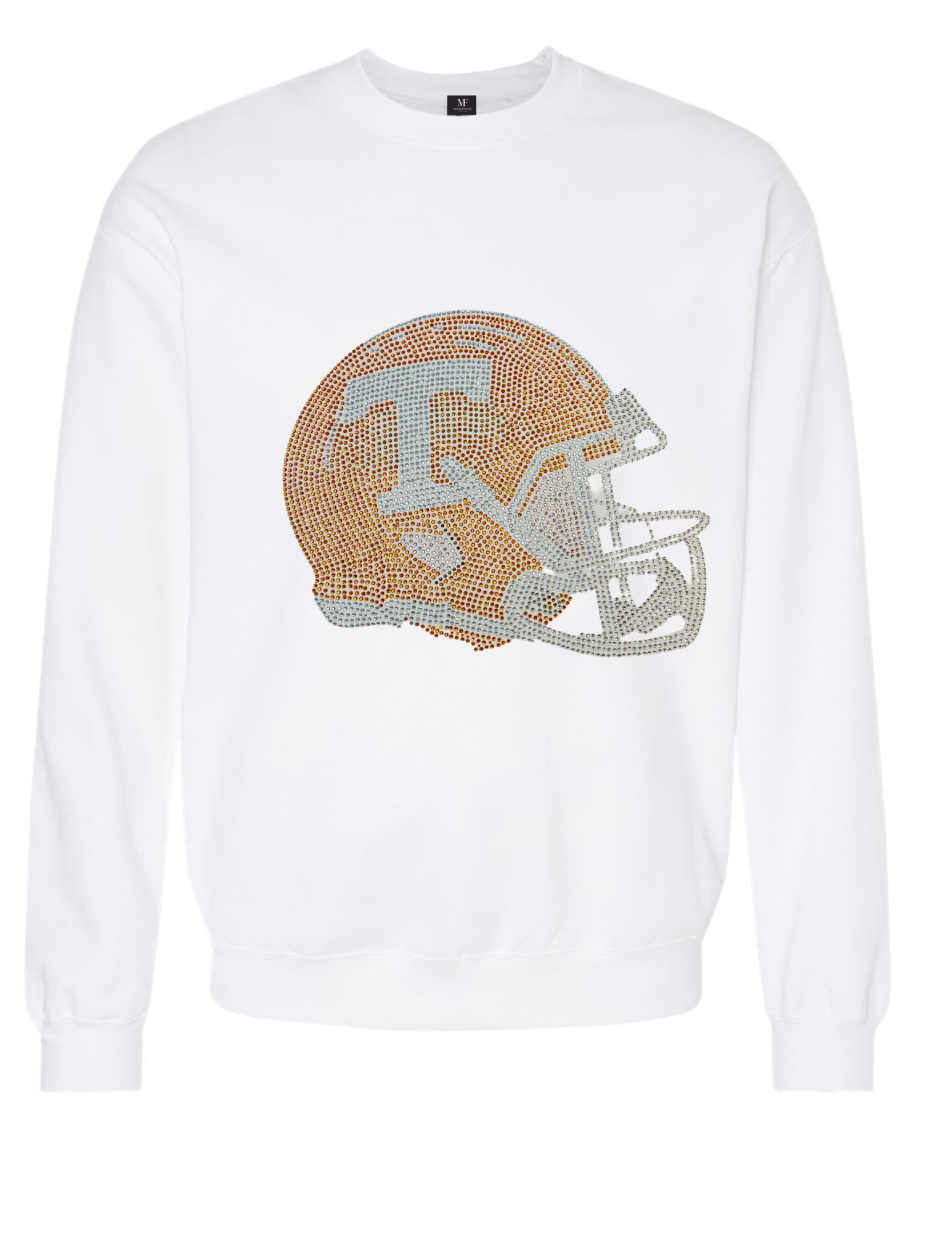 Game Day Sweatshirt, Crewneck White, Crystal Tennessee Vols Helmet