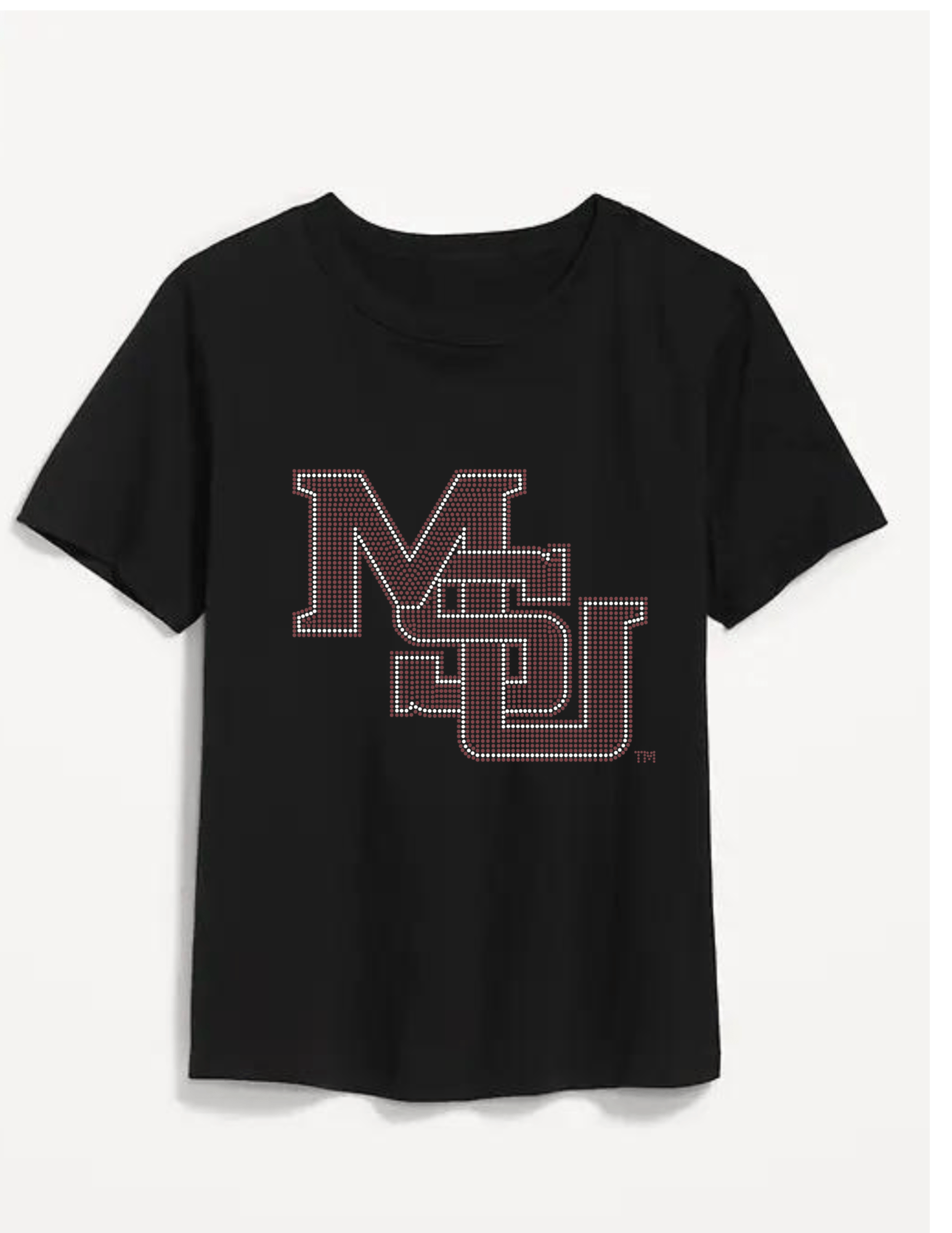 Show your Bulldog pride with this Mississippi State game day tee. Featuring a striking rhinestone-embellished stacked logo across the chest, this black crewneck combines classic style with eye-catching sparkle. The premium short-sleeve design offers comfort for tailgates, campus days, or casual wear. Durable construction ensures your rhinestone graphic stays brilliant through countless washes. Perfect for fans who want to represent their school with elevated style and authentic team spirit.