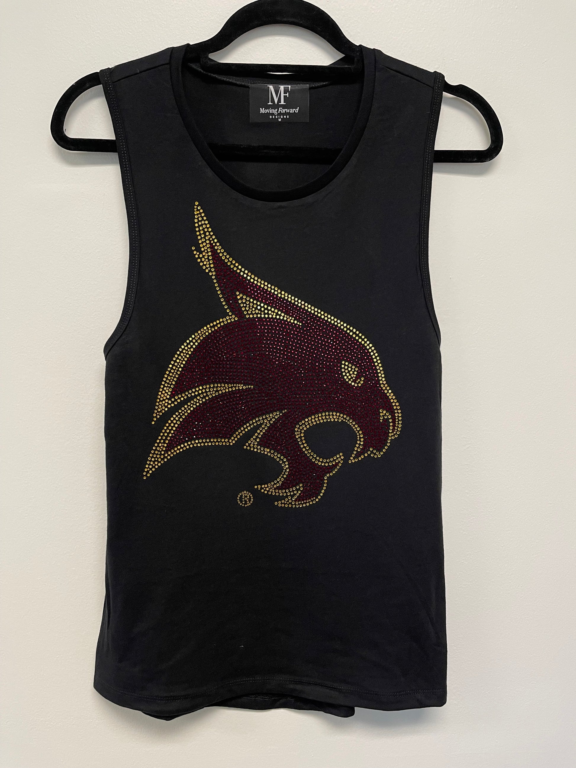 This Texas State tank top featuring the iconic Bobcat logo. Crafted from premium lightweight fabric in a versatile light gray, this breathable tank provides optimal comfort during game day or casual wear. Perfect for showing school pride while maintaining a stylish, athletic silhouette.