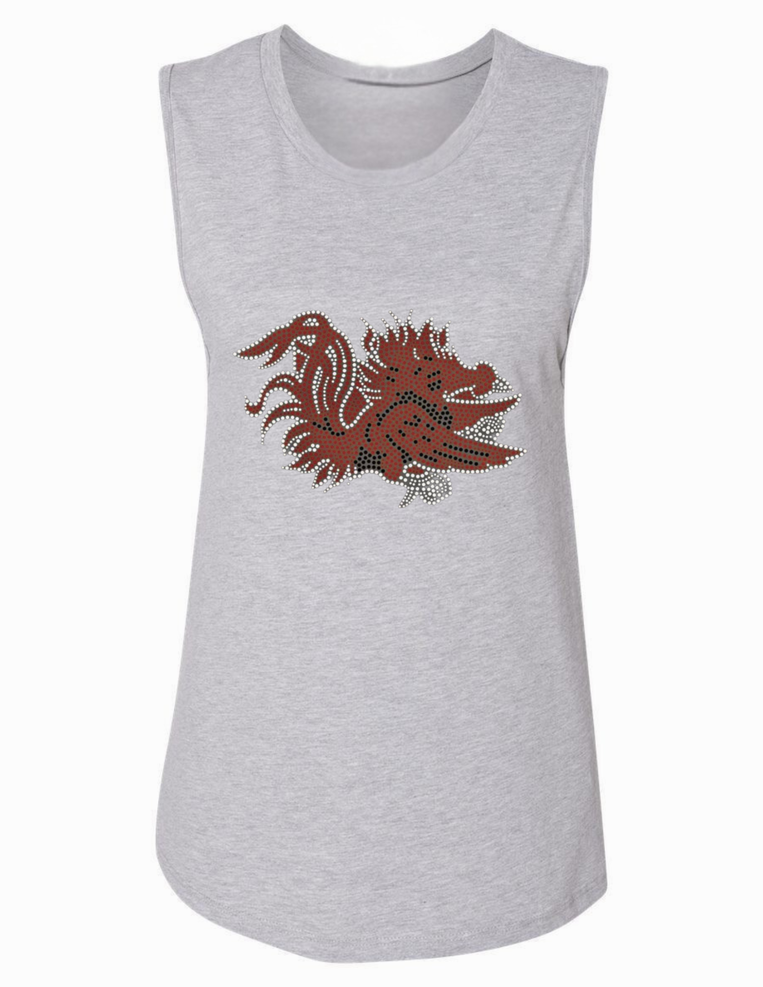 Show your team spirit with this Game Day Tank Top featuring a sparkling rhinestone logo of the University of South Carolina Gamecocks. Designed in a versatile gray, this medium size tank combines comfort with eye-catching style, perfect for game day or casual wear. The rhinestone embellishment adds a touch of glam while proudly showcasing your support for the team.