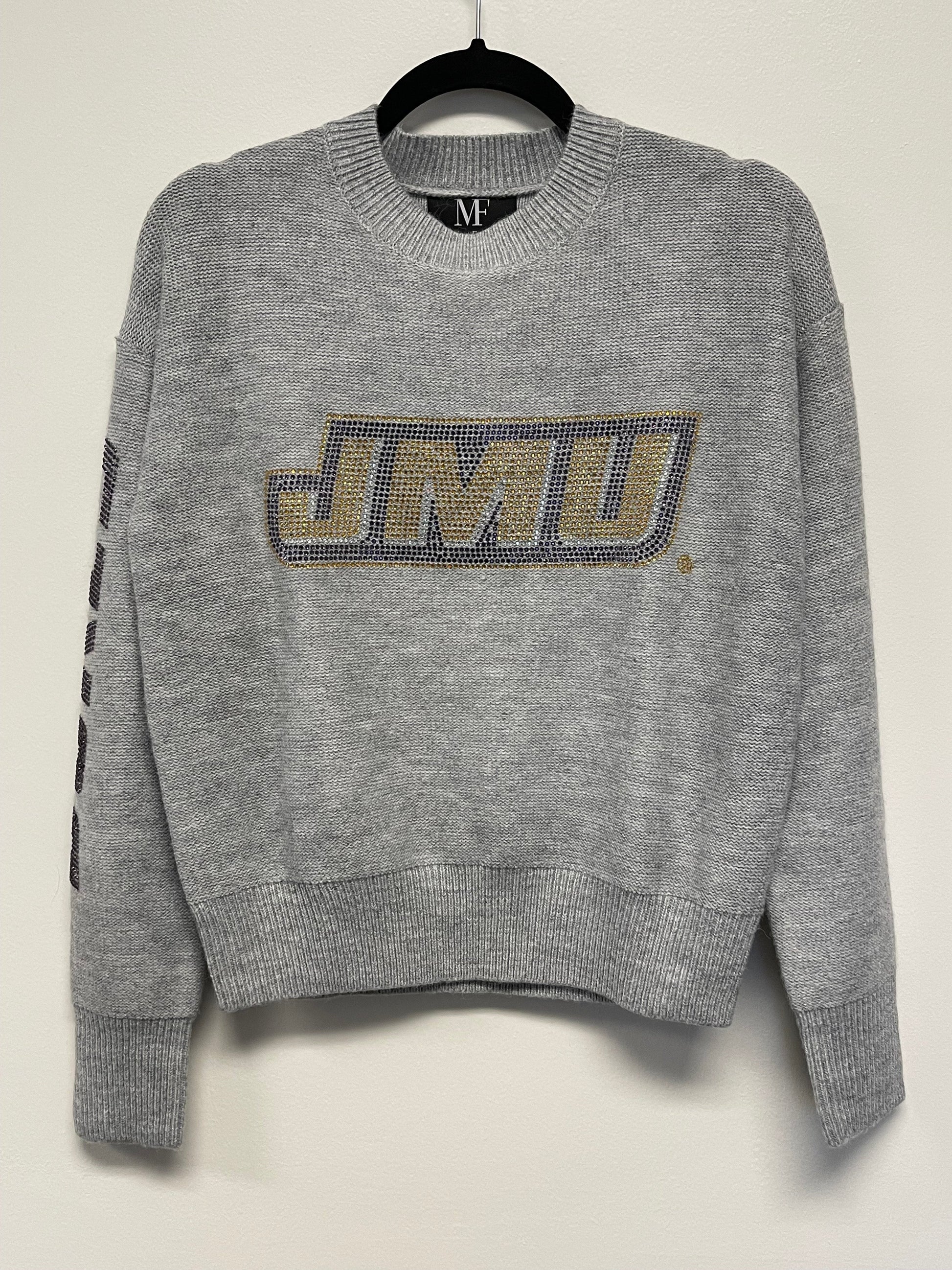 JMU Gray Crewneck Dukes and Crystal JMU Sweater